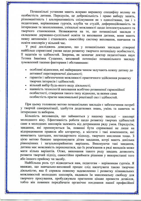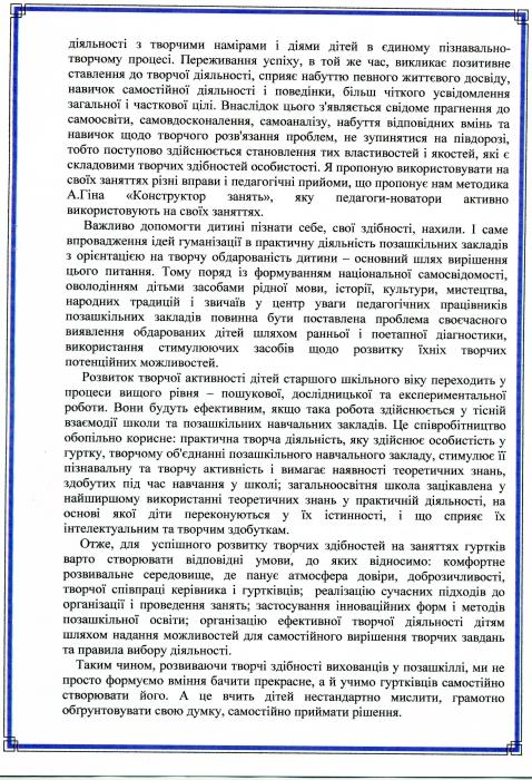 РОЗВИТОК ТВОРЧОЇ ОСОБИСТОСТІ НА ЗАНЯТТЯХ ГУРТКІВ У ПОЗАШКІЛЛІ