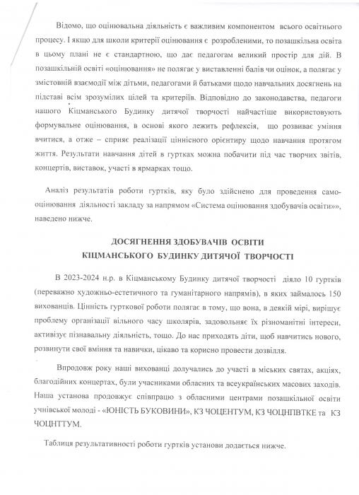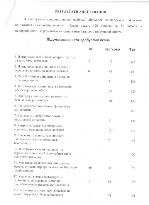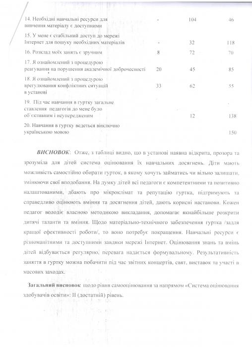Результати самооцінювання якості освітньої діяльності за напрямом "Система оцінювання здобувачів освіти"