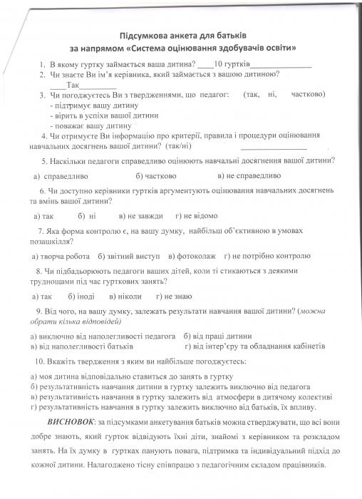 Внутрішня Система Забезпечення Якості Освіти / Напрям Оцінювання «Система Оцінювання Здобувачів Освіти»