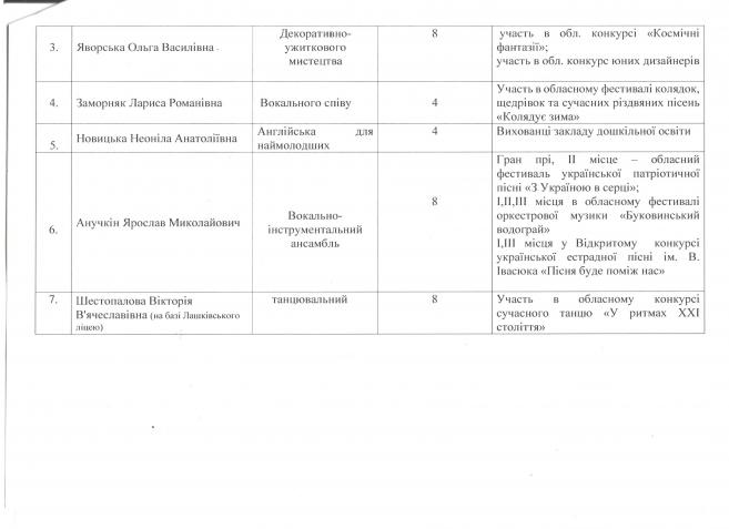 Таблиця результативності роботи гуртків Кіцманського Будинку дитячої творчості